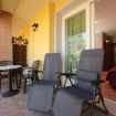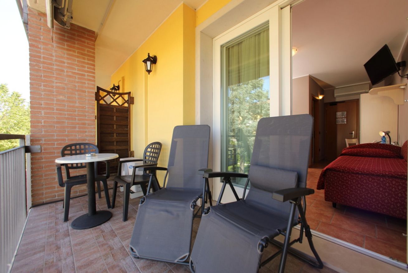 Le camere laterali hanno un balcone privato più grande delle camere frontali dotato anche di sdraie.