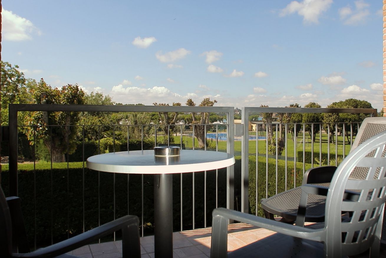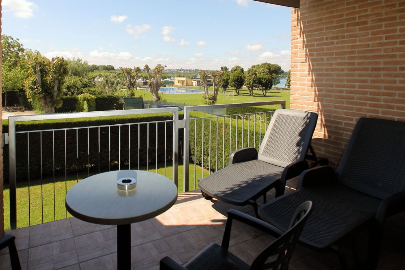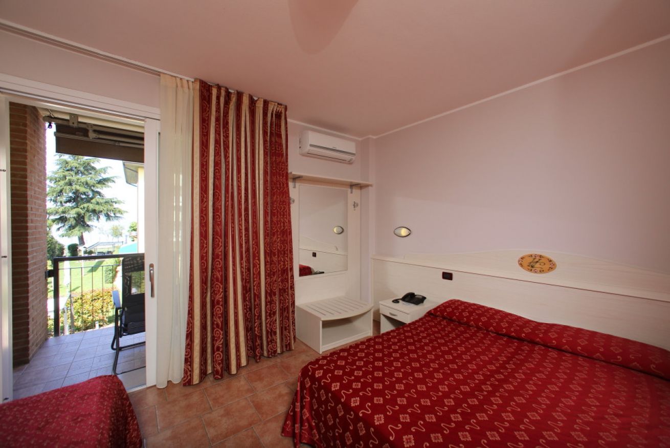 Camera matrimoniale o con letti singoli nella Dependance adiacente all'Hotel con balcone privato da cui si gode di una parziale vista sul Lago di Garda.